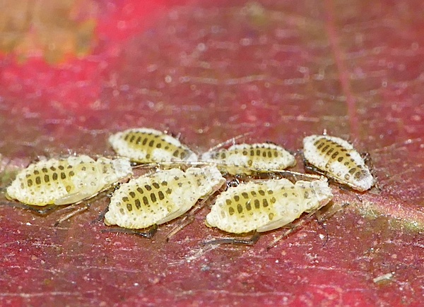 Top Photo: Myzocallis aphids on scarlet oak leaf.