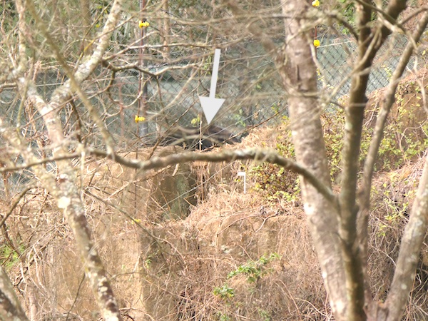 Top Photo: View of rock wall in Black Bear Enclosure through fence at Secondary Viewing.