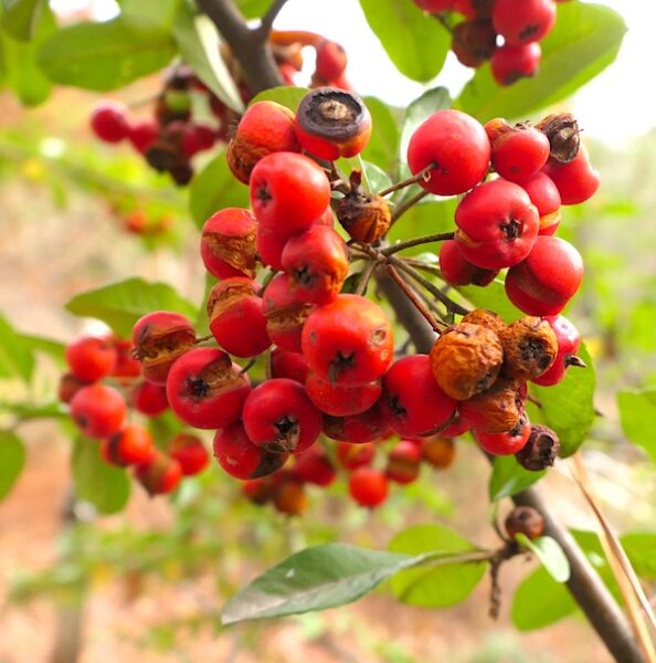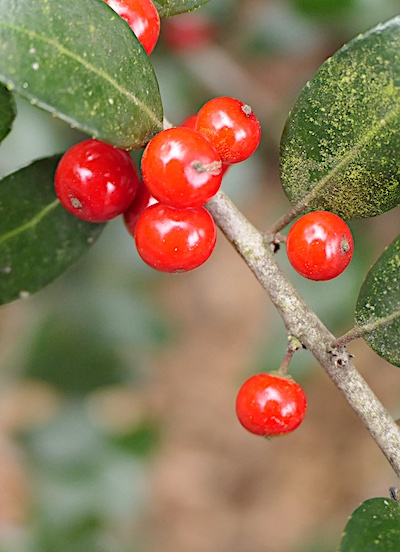 Fruits like beauty berry, holly (both American and yaupon holly), wax myrtle, firethorn (Pyracantha), rose hips, cedar, and other winter fruit play a big part in many birds’ diets.