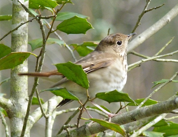 Birds like American robin (top photo), hermit thrush, cedar waxwing, yellow-rumped warbler and others depend on fruit lingering on shrubs and vines into winter to maintain themselves through the cold months.