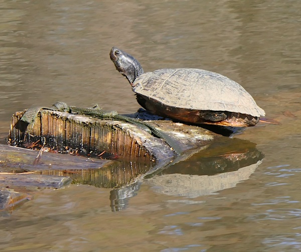 A yellow-bellied slider thought it warm enough to emerge from the mud and bask in the sunny 52 degree weather on Friday (2/13).