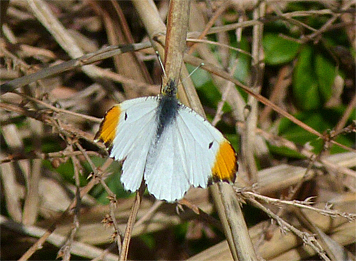 Another low flying spring butterfly is falcate orangetip. They are small white butterflies. The males have orange colored scales on the tips of their forewings. The second half of March through the middle of April are the best times to see them. Your chances increase if there are mustards in the area. Even so, if you don’t see one by the end of April, you probably won’t see one.